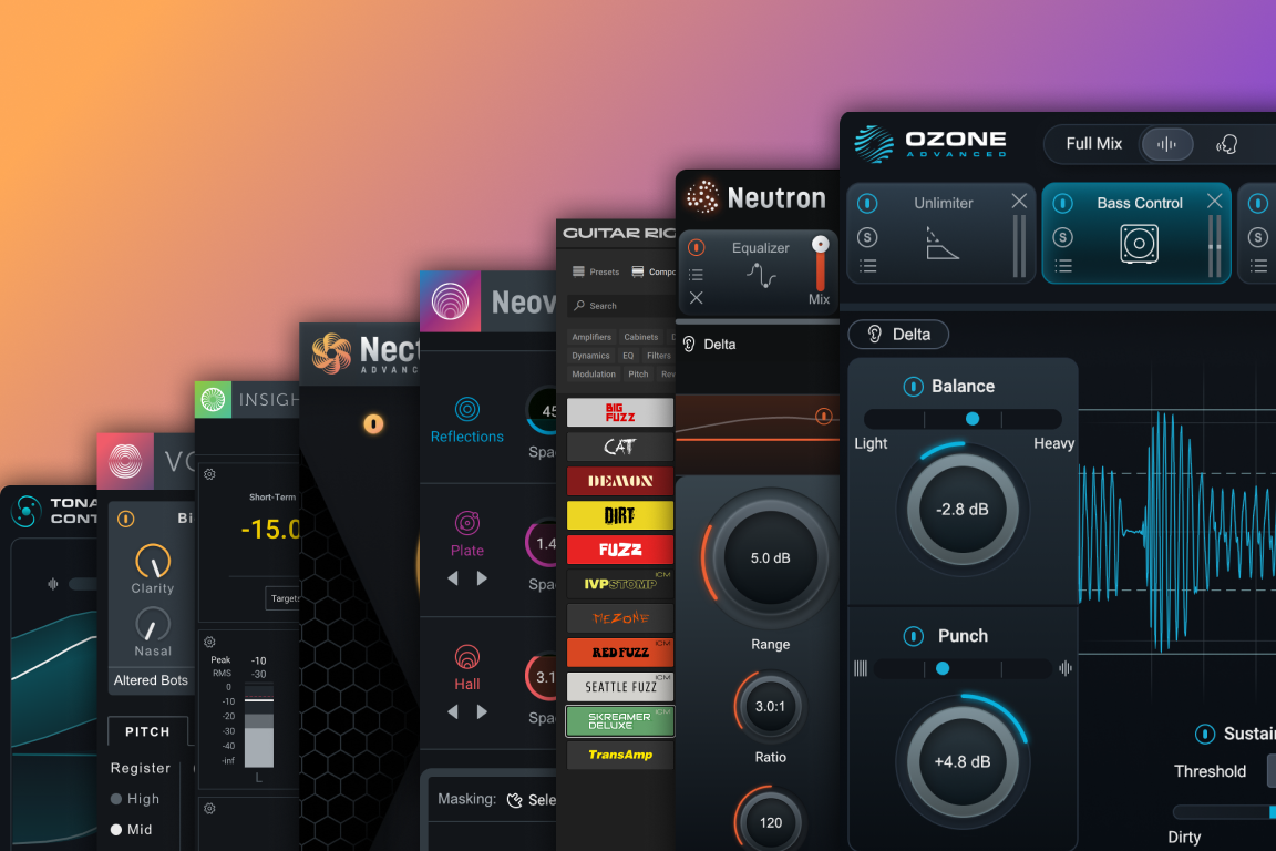 Own your audio universe with Ozone 12 Advanced, RX 11 Standard, Nectar 4 Advanced, Neutron 5, the new Equinox, six additional plug-ins from our partner, Brainworx, and more. We’ve also added Guitar Rig 7 Pro from Native Instruments, a powerful multi-effects rack for endless creative sound sculpting.